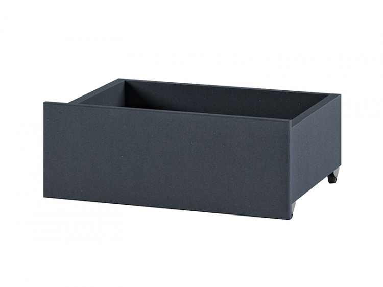 Ящик подкатной. Цвет - "Антрацит". Боковины толщиной 22 мм, облицованы кромкой 0,4 мм. Фасад толщиной 16 мм, облицован кромкой 2 мм.