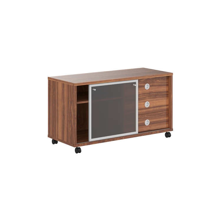 Тумба мобильная комплектуется стеклянной слайд-дверью в алюминиевой рамке, стекло тонированное пленкой, бронза.